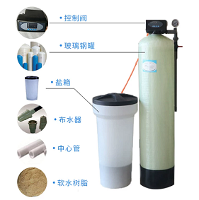 全自動單閥單罐軟水器主要由程序控制器、多路控制閥、鈉離子交換罐(含樹脂)、鹽箱及配件等組成,配件包括上、下布水器、中心管、輸鹽管、排污管、流量計(流量型用)、鹽井、鹽閥、過濾隔板、限流閥、鎖母等組成。